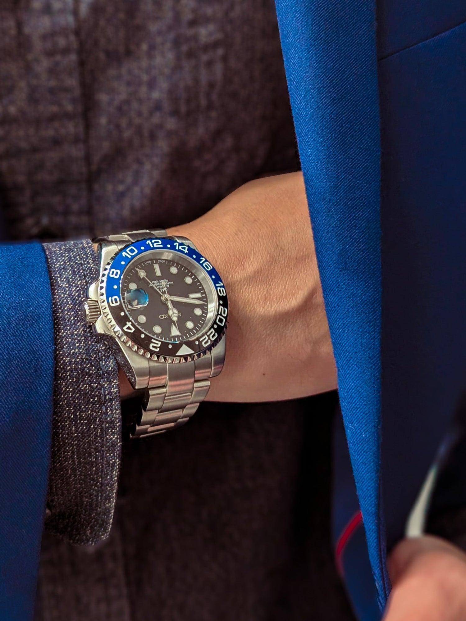 Inspired by the iconic GMT design, it features a ceramic bezel, screw-down crown, and sapphire crystal with anti-reflective coating—built for those who value precision, durability, and sophistication.